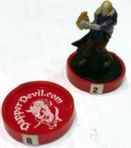Elite DM Chuck Benscoter uses markers that cup miniatures’ bases. Too bad Dapper Devil no longer sells these markers.