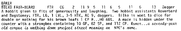 The package shows remarkable creative output. No locations in the sprawling city rate as too mundane for descriptions. Even with five bakers, the guide finds something interesting to say about each. The locations offer a treasury of fantasy names. Just the roster of the Mercenaries Guild provides 20 names, and the city has 300 more locations.